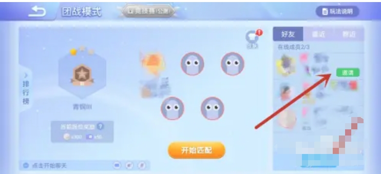 7、开始游戏:好友确认并加入,就可以在主界面选择团战模式或其他适合多人玩的模式,然后邀请好友一起进行游戏。