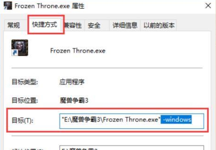 在“目标”栏中,你会看到原有的文件路径。在这个路径的末尾,输入一个空格,然后加上“-windows”。这样做的目的是告诉游戏以窗口模式运行。