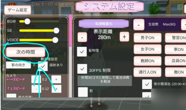 2.点击菜单选项中的系统设置,进入系统设置界面。在系统设置界面可以看到很多可以修改的功能,其中包括“下一个时间”的功能选项。单击以调整游戏中的时间。