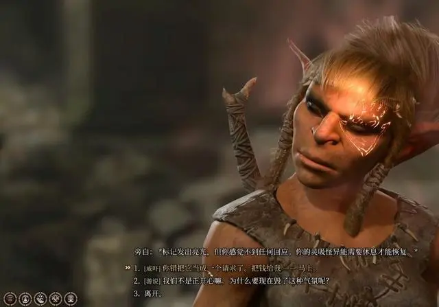 2、击杀大枭熊后,触发剧情选择,选择“放那个生物一条活路”。然后离开枭熊洞穴。目前暂时无法驯服小枭熊。
