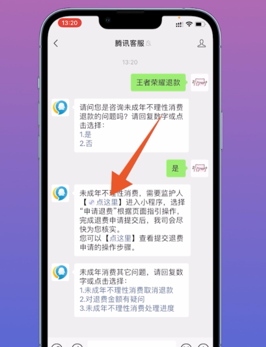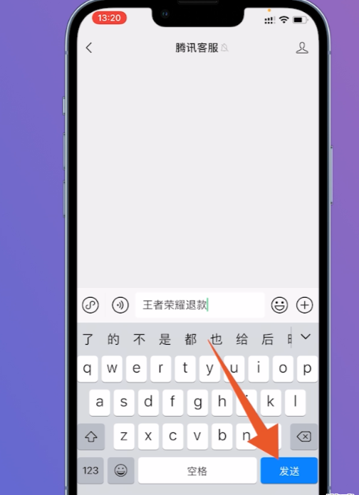 跳转到腾讯客服的页面后,点击输入框,输入王者荣耀退款,点击发送