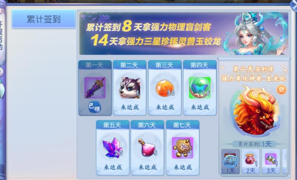 1、进入游戏点击上方的开服活动,一般连续签到就可以获取一定数量的桃心
