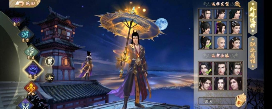 1.首先玩家进入游戏之后要做的第一件事就是选择职业,游戏内提供四个职业供玩家选择,包括丐帮、逍遥、天山和峨眉。其中,丐帮最适合新手使用,具有高肉量、高输出和强控制能力。如果您喜欢远程职业,可以选择峨眉,以剑法及剑气技能为主,操作简单。