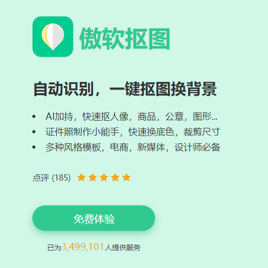 傲软抠图是一款专业的只能抠图软件,只需简单几步,就可以去除图片背景,自动识别图片中的人物或其他主体,不仅有抠图功能,还有图片去水印,修改证件照,人物或物品变清晰等等,目前傲软抠图可以多平台使用,windows端,安卓以及ios系统,实用方便,让大家一键移除图片背景。