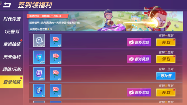 途径二:领奖福利,同样是在主页面,点击福利图标,在弹出页面中,点击“1元签到”选项,就能了解参加活动,签到领奖。点击“登录领奖”选项,每天登录签到,也能获得一定的点券奖励。