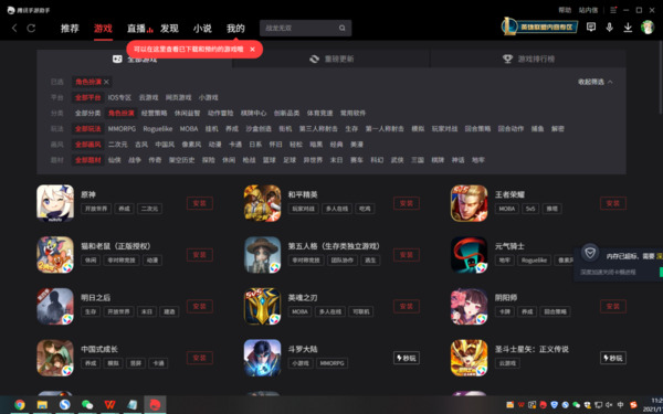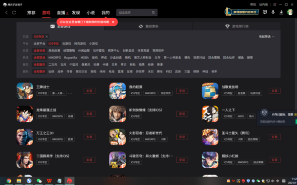 并且在腾讯手游助手软件中,我们还可以玩二次元、古风、中国风、卡通、动漫等画风类的游戏,还能玩仙剑、战争、传奇、科幻、武侠等众多题材的游戏。