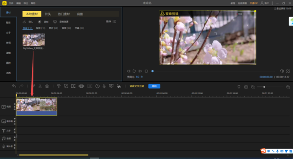 1、启动电脑端蜜蜂剪辑软件,然后将需要使用到的视频文件导入进来,接着将导入好的视频文件添加到软件的第一条视频轨道上。