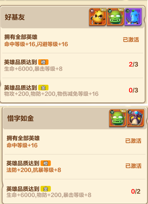 游戏中存在角色之间的羁绊,激活后只要羁绊中对应英雄在场,该英雄就可以获得对应档位的属性加成,而一开始推荐大家五小强阵容,也是因为可以通过羁绊来增强角色的能力提高队伍整体战力。