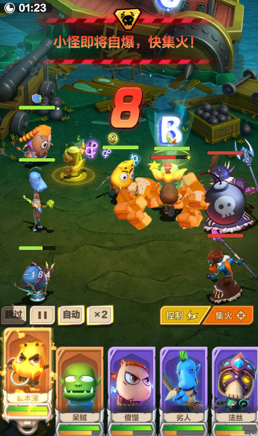 到了2-3可以优先凑齐菊爆大队五名角色,从第二章开始需要前排英雄抗伤害,建议优先提升MT、呆贼等级,能抗伤害和进行嘲讽,后续获得核心英雄再重点培养,签到送的“冬”和“血小贱”获得后可以替换目前劣人和法丝的位置。