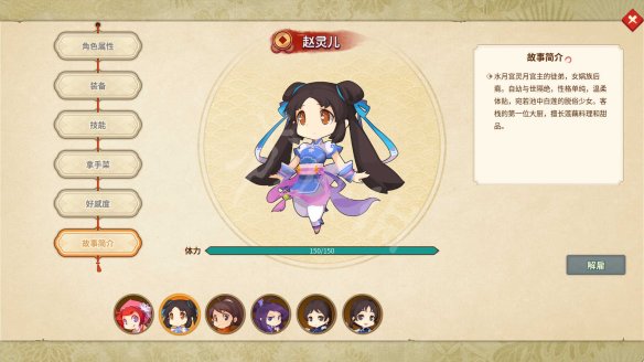能一次拿2个盘子而临危不乱。李逍遥的技能适合跑堂,他的速度属性也比较高。