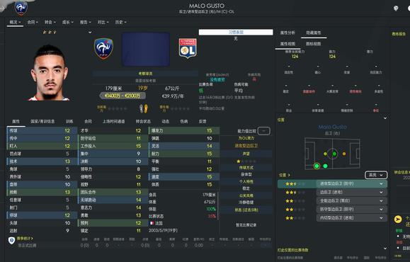 推荐理由:好的年轻右后卫太少了,古斯托算是一个,双速不错,其他属性基本合格,就是集中决断太膈应人了,好在年纪还小,还可以练。开档可入,不便宜。