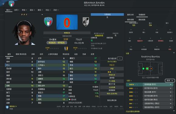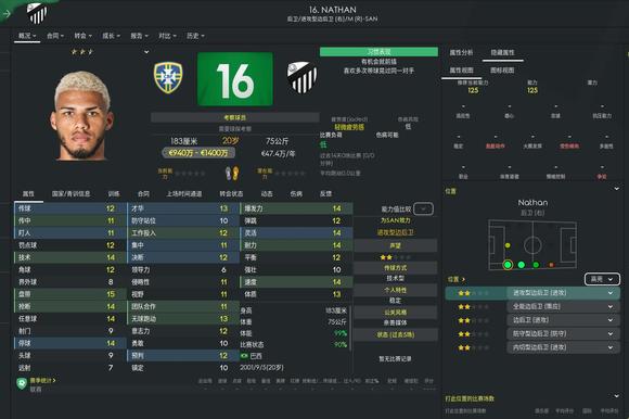 推荐理由:这是个流浪在葡萄牙的意大利户口,虽然开档位置是中卫,但是看他的身体和技术属性,似乎改成一个防守型右后卫更好,打后腰似乎浪费了他劲爆的身体素质,还是放边路当个暴力冲击波比较合适。开档刚续约,等第二年再说。