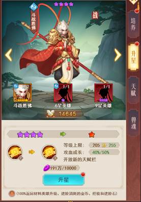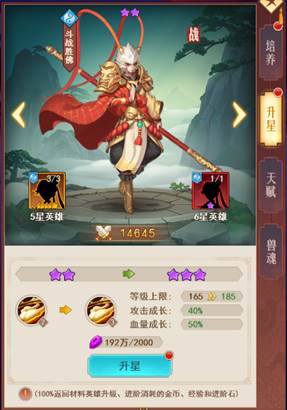 5星升6星:需要2个斗战胜佛+4个任意同系5星英雄;