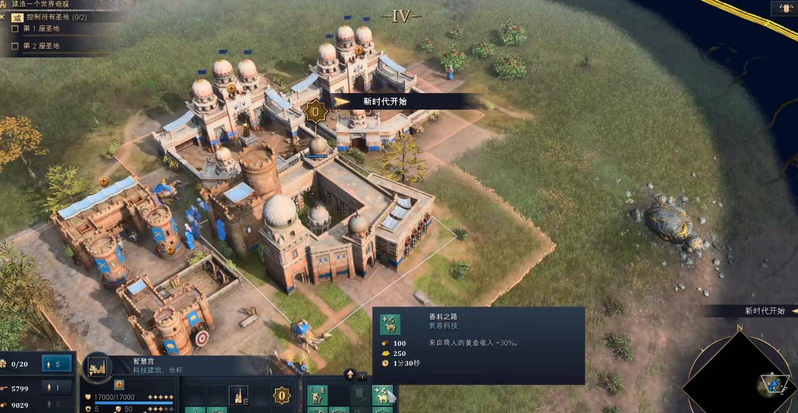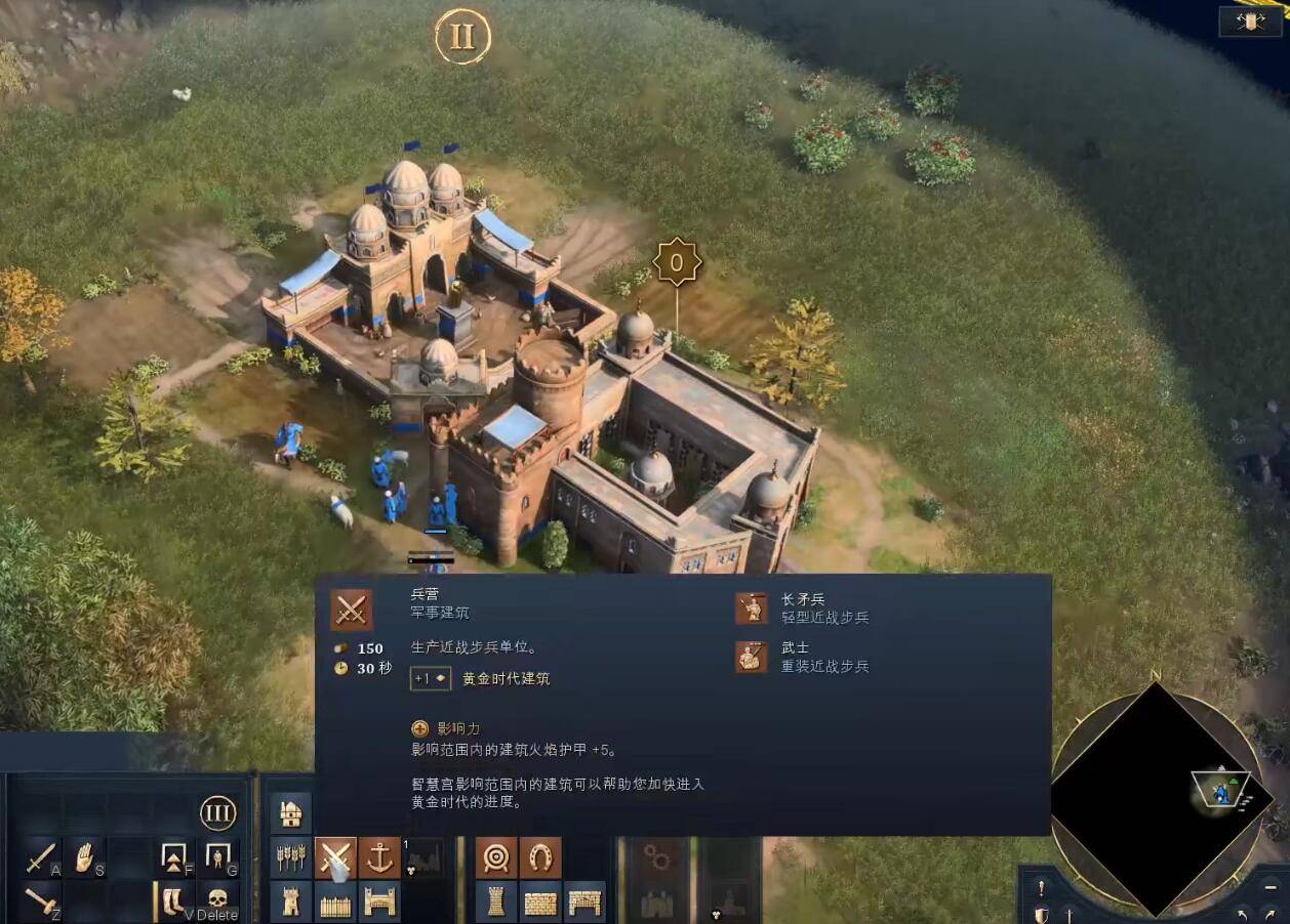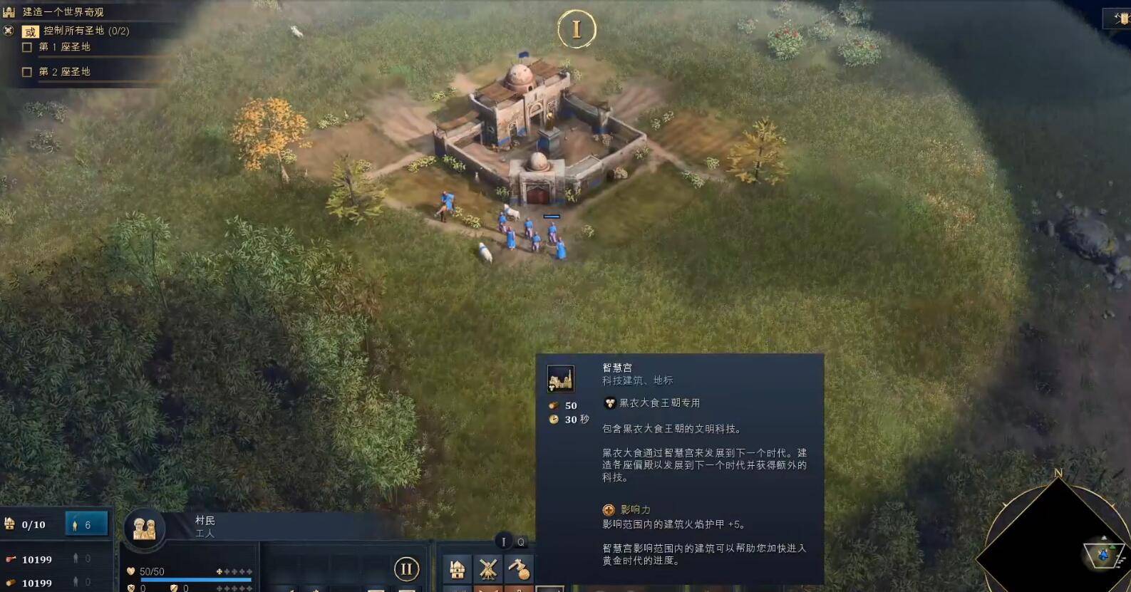 2、进入黑衣大食王朝后,会看到黑衣大食王朝专用的科技建筑就是智慧宫。黑衣大食通过智慧宫来发展到下一个时代。建造各座偏殿以发展到下一个时代并获得额外的科技。智慧宫影响范围内的建筑可以帮助加快进入黄金时代的进度。