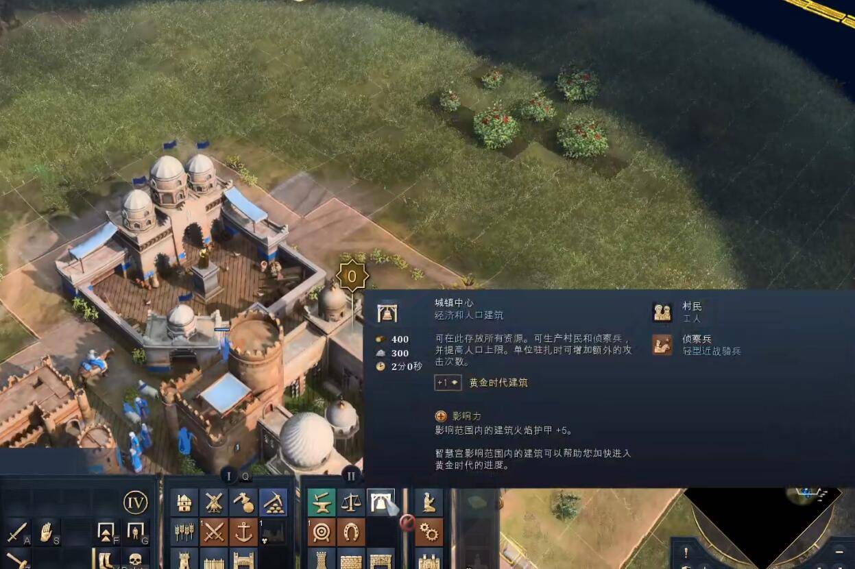 9、然后再建设一个城镇中心,这样用之前一个村民的成本可以生产两个村民,资源会得到大幅度提升。