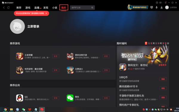 1、启动电脑上的腾讯手游助手软件,然后登录到自己的账号当中。