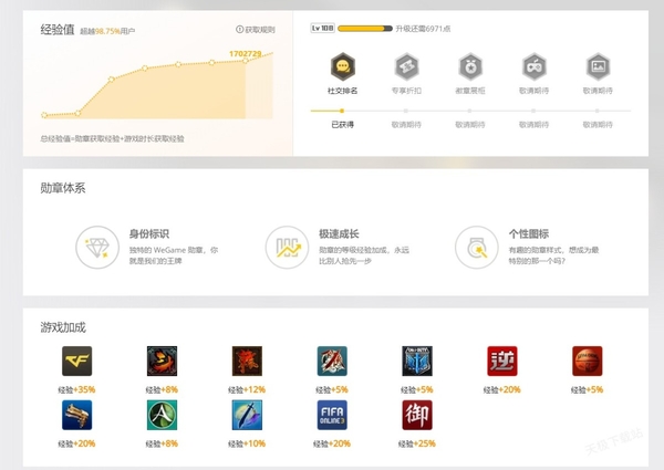 部分游戏会根据你的账号等级提供额外的经验值加成,通常分为1~4,5~14,15级以上三个阶段,WeGame等级越高,游戏内升级速度越快,有的游戏还会获得专属游戏道具。