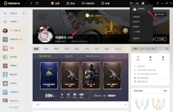 首先,登录自己的WeGame账号,然后点击页面上方的个人头像就可以来到个人首页。在个人昵称旁边就可以看到我们的WeGame个人账号等级了。