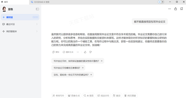 豆包是字节跳动开发的一款AI工具,拥有AI写作、AI聊天、AI绘画等功能,其中AI写作尤为受欢迎,它覆盖了多个领域,能够生成各种高质量文章。一些小伙伴可能会有疑问,豆包写出来的文章重复率高吗,能不能直接用它来写毕业论文,小编调查后发现,豆包写出来的文章重复率不高也不低,要看实际情况,但肯定是不能用来写毕业论文的,下面为大家详细解答。