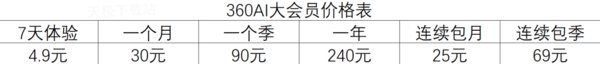 小编调查后发现360浏览器的AI大会员收费标准是30元/月,连续包月的话是25元/月,目前新用户有活动,可以4.9元体验7天AI大会员,不过需要注意7天到期如果没取消自动续费,后续将按照69元/季自动续费,具体收费标准如下。