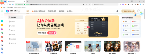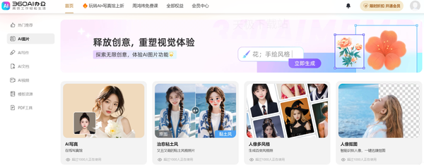 2.这样我们就进入【360AI办公】页面了,可以在这里使用各种AI工具。