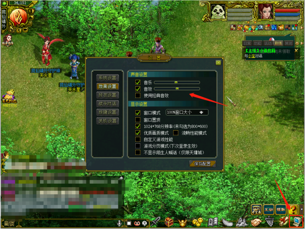 当玩家在登录问道游戏后同样需要打开游戏设置窗口中的效果设置页面,在效果设置页面的声音设置中玩家可以勾选音效选项,从而对音效单独调整校对。当设置完成后小伙伴们也不要忘记点击下方的“保存配置”按钮,否则玩家针对声音的设置就会是无效设置。