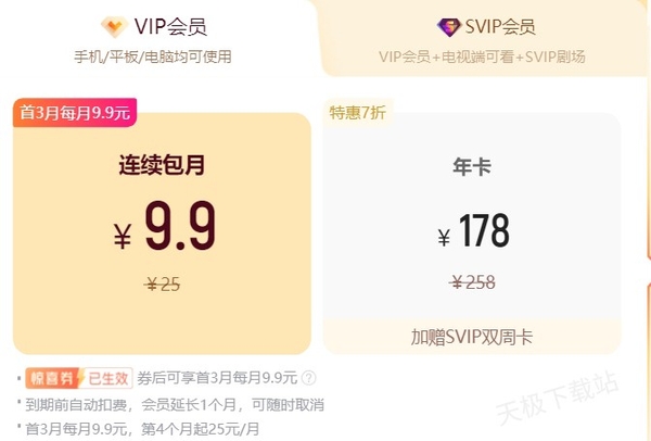 连续包月:仅需9.9元(前3个月每月仅需9.9元)