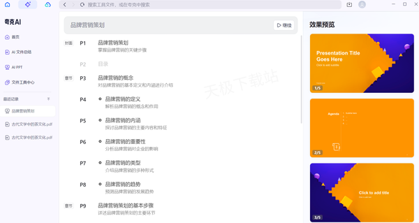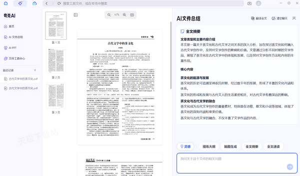 随着科技的发展,人工智能(AI)技术不断成熟,人们的生活随之发生了很大的变化,AI技术能够帮助我们轻松完成很多任务,比如智能翻译、智能生成文档等,夸克浏览器就拥有很多好用的AI工具,很多小伙伴对此还不清楚,下面天极小编就为大家详细介绍一下。