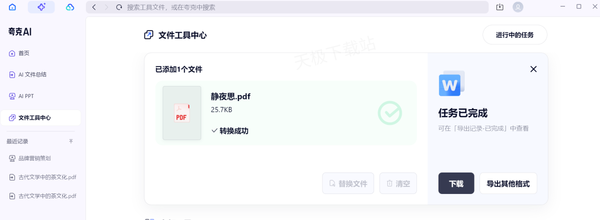 3.AI格式转换。支持PDF与Word、Excel、图片互转。