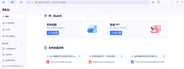 2.在【夸克AI】里拥有很多实用的AI工具,比如AI文件总结、智能生成PPT等,下面小编为大家介绍一下夸克浏览器有哪些AI工具。