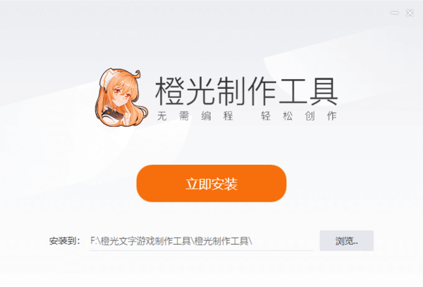 方法一:直接在本站下载橙光文字游戏制作工具安装包,下载完安装包后的,点击打开。在安装向导界面,点击“浏览”自定义安装路径,更改好安装路径文件后,点击立即安装就行了。