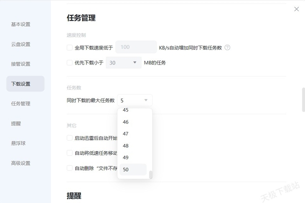 3.在这里就可以设置文件同时下载的数量了,最大可支持50个文件同时下载。