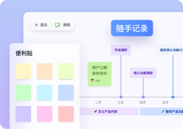 3,飞书的画板是有便利贴功能的,方便喜欢使用便利贴的员工随时记录自己的想法和灵感,让这些零散的想法成为团队的锦囊,为其他用户提供参考意见。