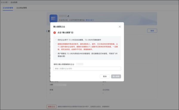 以上就是关于在飞书管理平台上解散企业的相关操作方法以及注意事项,感谢大家的阅读。