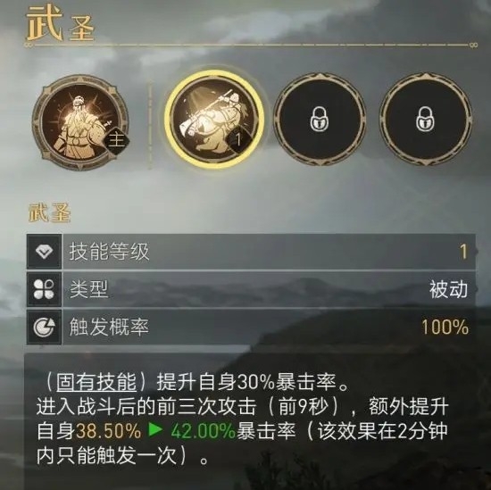 2,武圣的最优技能组合是战争狂热和致命一击,如果没有这两个技能的时候也可以使用连击、怒涛之击等四星级的技能进行作战。