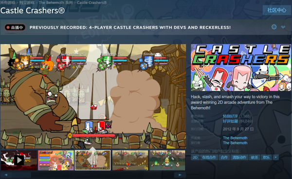 4.城堡毁灭者Castle Crashers(原48,现新史低4.8)