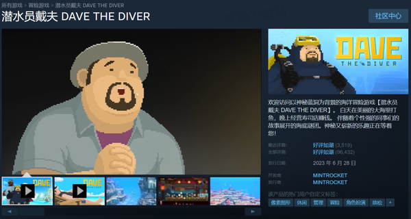玩家在这款游戏中将扮演戴夫,白天在神秘的海洋蓝洞探险捕鱼,晚上经营寿司店。游戏中有 100 多种海洋生物和 50 多种武器,还包含丰富的经营玩法和各种任务。它融合了冒险、RPG 和模拟经营等多种元素,玩法多样,Steam好评率高达XX%,显卡要求GTX750Ti。