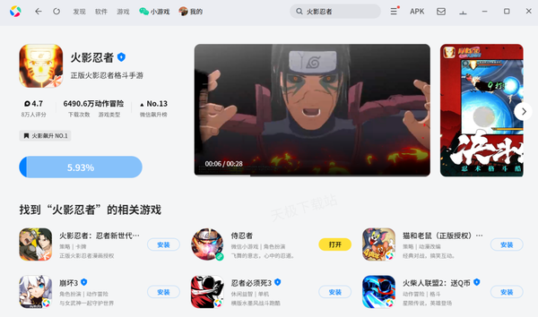 2.在上方搜索框输入【火影忍者】,找到后点击【下载】。