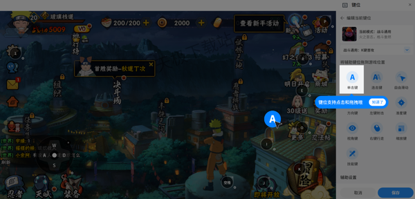 2.点击键位进行拖拽,然后点击对应的键盘字母进行设置,注意键位冲突即可。