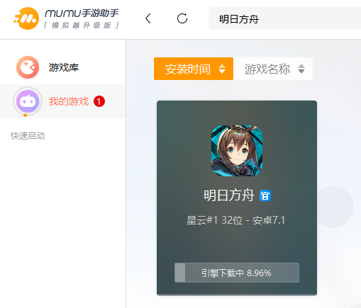 步骤二:点击页面左侧的“我的游戏”,页面刷新后,就能看到正在下载的明日方舟了,等待游戏下载完成后,点击“打开”,就能跳转到游戏界面。