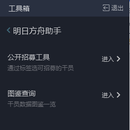 2.游戏助手:MuMu手游助手上,还给游戏准备有一个辅助工具。点击游戏界面下方的工具箱,在游戏界面右侧就会多出工具箱界面。选择明日方舟助手,就能使用公开招募和图鉴查询两个助手工具了。