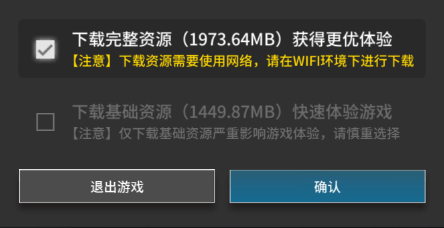 步骤三:初次下载安装明日方舟的用户,需要下载游戏资源包,建议直接下载完整的资源,游戏体验会更好。资源包下载解压完成后,就能开始游戏了。