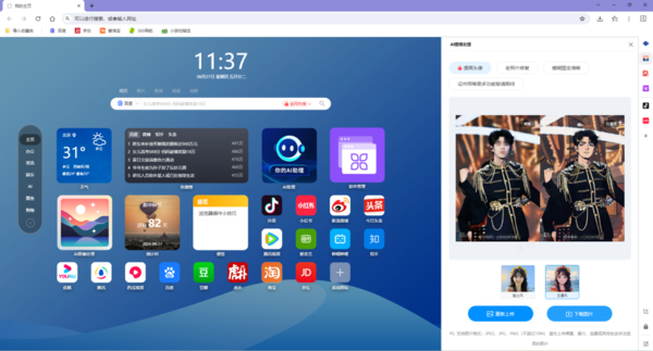 这款浏览器内置了AI图像处理功能,直接点击即可使用,它不仅可以将普通图标生成漫画风格的图片,还可以生成黏土风的图片,并且它还具备老照片修复、模糊图片变清晰功能,轻松满足日常简单的图片处理要求。