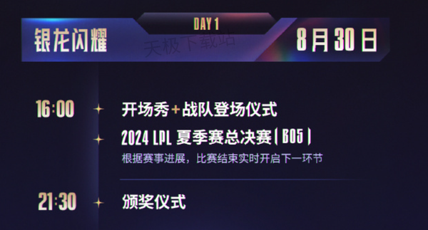 小编调查后发现,2024英雄联盟LPL夏季赛决赛时间定在8月30日17:00,赛制为五局三胜(BO5)。同时,英雄联盟的13周年庆典也会在之后举办,详细时间安排如下。