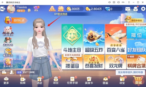 2.设置完成后,返回斗地主的首页,并点击首页上的人物形象。