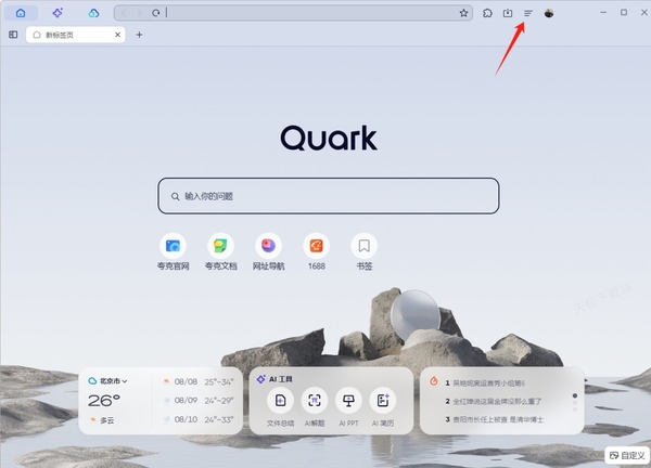 1.首先打开夸克浏览器,然后点击页面右上角的“自定义及控制”功能按钮。