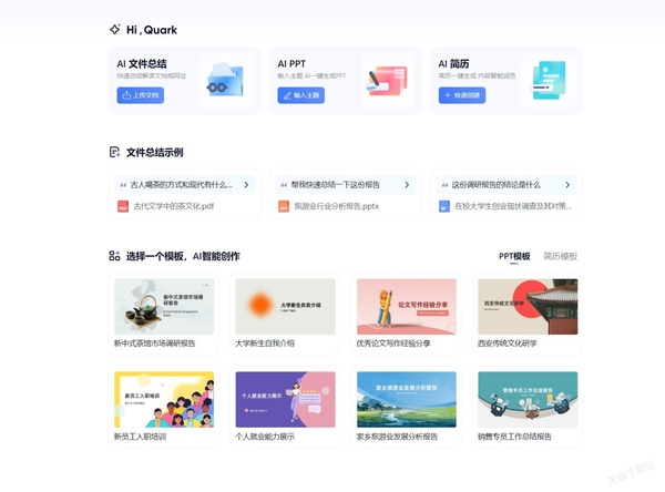 夸克浏览器融合强大AI技术,提供全方位智能辅助。AI总结快速提炼要点,节省时间;AIPPT自动生成专业PPT,提升工作效率;AI简历智能匹配需求,助力求职脱颖而出;AI文件处理则简化文档操作,实现高效便捷的文件管理。这些功能共同打造了更智能、高效的浏览体验。