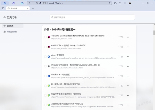 若想查看更全面的浏览记录,夸克浏览器提供了更强大的搜索和浏览功能。您只需按下键盘上的“Ctrl+H”快捷键,即可直接打开夸克浏览器的历史记录页面。这个页面不仅列出了您所有的浏览记录,还允许您通过搜索框快速定位到特定页面的记录。