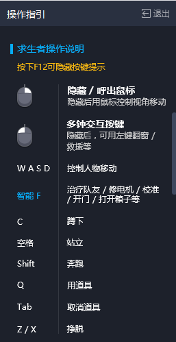 1.操作指引:打开第五人格手游后,在游戏界面右侧就是操作指引,玩家可以查看目前的键鼠按键设置。