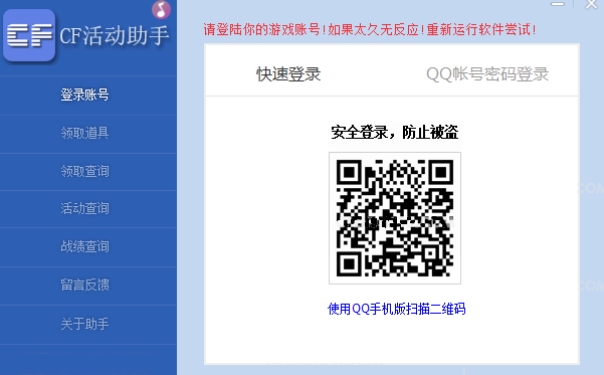 下载并安装好CF活动助手后,双击打开软件。在软件界面上,您会看到登录信息的提示。